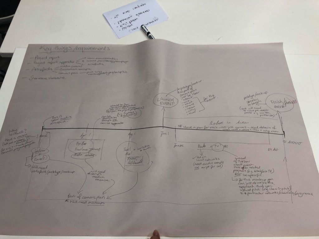 The development of our launch started rough. We had idea how to structure the launch so our group wrote our initial ideas onto a parchment paper. After further refining in a “map draft”, this later became the user experience chart.