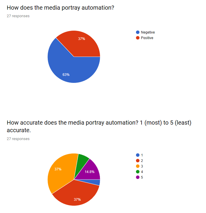 As apart of our research to determine the legitimacy of the fear for technology, a survey was created to outline the severity of the issue. Posted on various Facebook messenger boards, and face-to-face questioning, the 27 responses to our 5 questions confirmed our initial research that technology is portrayed negatively by the media.