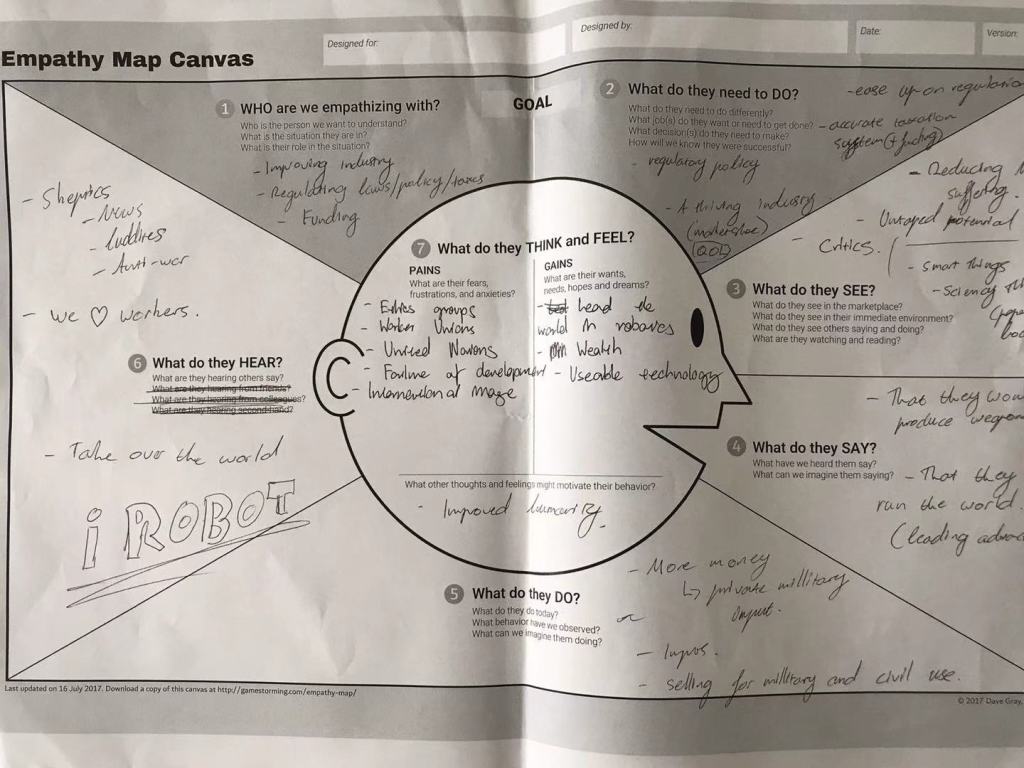 Upon the initial research stage, our group first started off with a rough empathy map, outlining the details of human design thinking and the process we want to adopt.